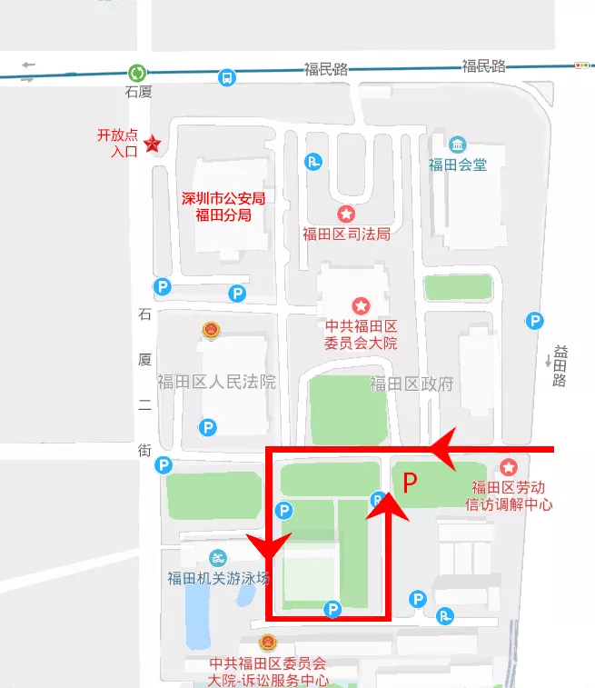 可乘坐公交線(xiàn)路:34路、73路、202路、303路、b689路、b957路、m133路、m389路、m390路,至福田區(qū)委站下車(chē)
