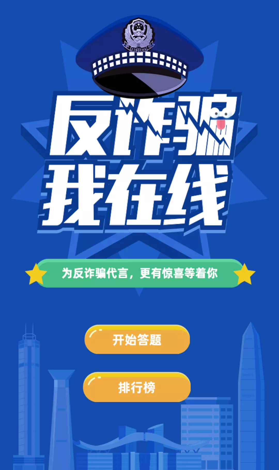 當天“反詐騙我在線”線上答題活動正式推出,掃一掃二維碼,關(guān)注“福田警察”微信公眾號,即可參與答題,答對3題并分享反詐代言框到朋友圈,有機會獲得紅包獎勵。