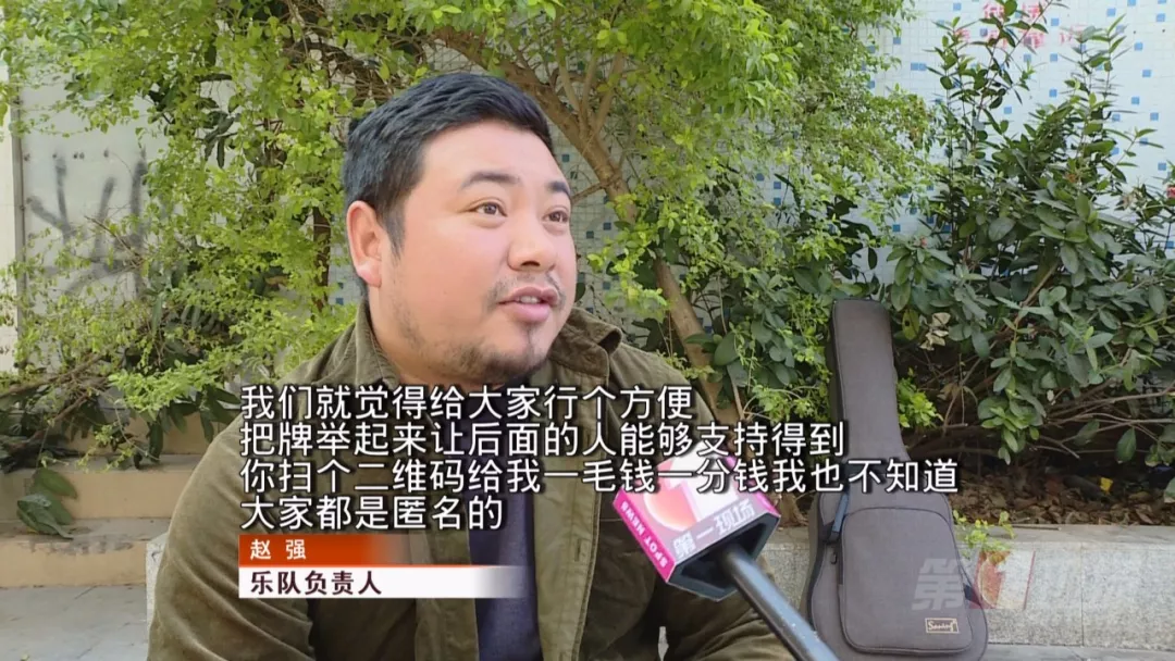 上周末,恰逢蓮花山簕杜鵑展,廣場人流量猛增,觀看樂隊(duì)演出的市民圍了好幾層,為了方便后排市民打賞,一名銀河樂隊(duì)的成員就把原本放在地上的二維碼拿在手上,在觀眾前繞了一圈,沒有強(qiáng)制索要打賞的意思。