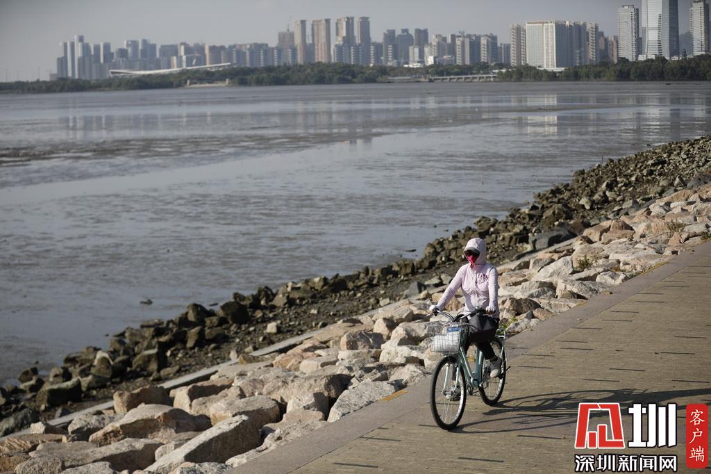 深圳灣公園,一位“全副武裝”出行的市民。