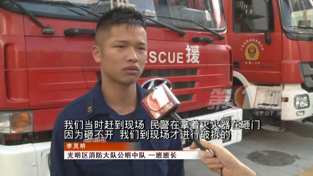 該戶人家用的是密碼鎖,可能是因?yàn)槭掳l(fā)緊急,再加上屋內(nèi)濃煙嗆鼻,女主人竟然一直說不準(zhǔn)房間大門的開鎖密碼,危急時(shí)刻,消防隊(duì)員及時(shí)趕到了現(xiàn)場(chǎng)。