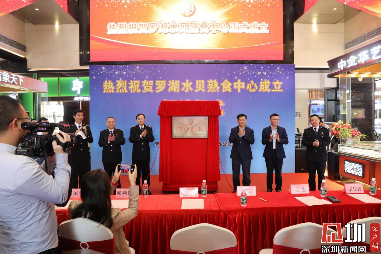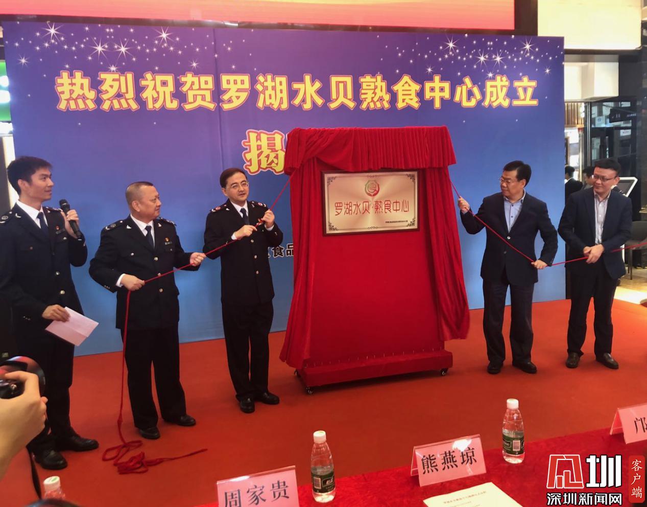黃敏副市長、市市場監(jiān)管局局長鄺兵、羅湖區(qū)副區(qū)長文忠及深圳市市場監(jiān)管局、羅湖區(qū)政府有關(guān)負責(zé)同志為羅湖水貝熟食中心揭牌