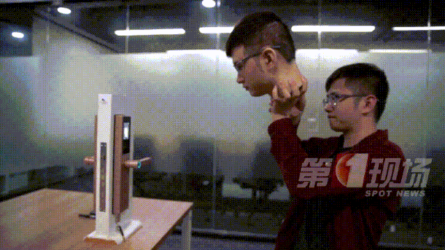 工程師事先已將自己的面部信息錄入門禁系統(tǒng),現(xiàn)在我們用這個3D頭模來開門試試。