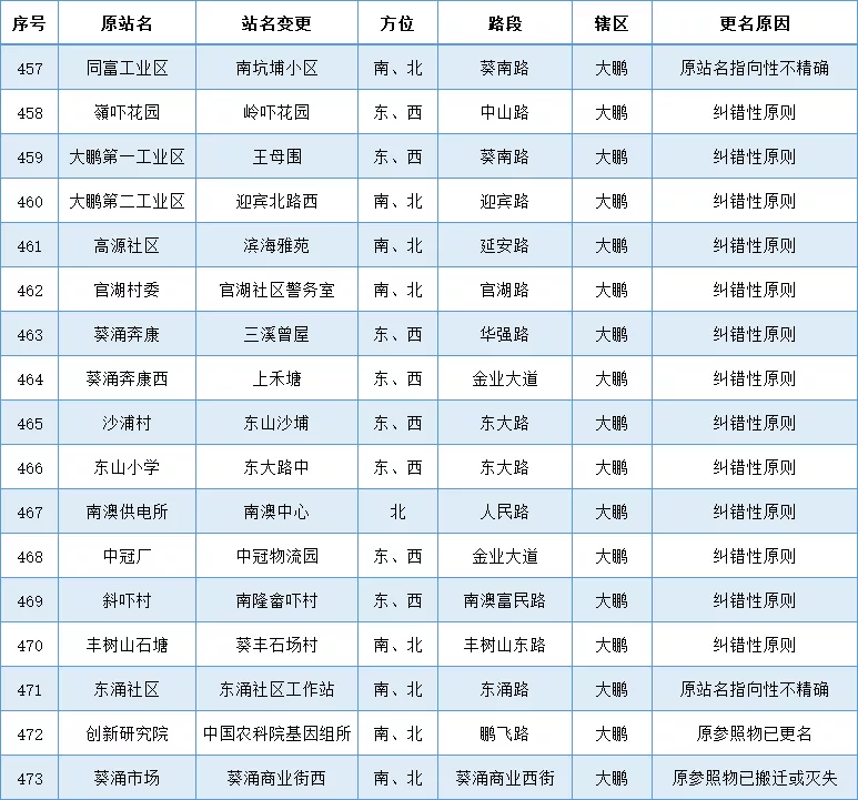 各區(qū)(新區(qū))公交站更名名單