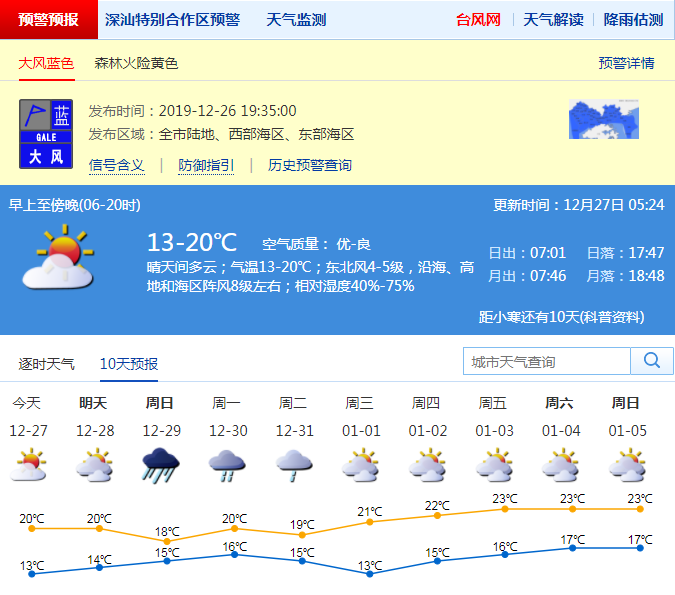 見圳客戶端·深圳新聞網(wǎng)2019年12月27日訊 昨日下午冷空氣已經(jīng)開始逐漸影響我市,風(fēng)力有所加大,沿海高地最大陣風(fēng)已達(dá)到6-7級。市氣象臺預(yù)測,受冷空氣+臺風(fēng)聯(lián)合影響,29-30日我市將有一次大雨到暴雨降水過程。