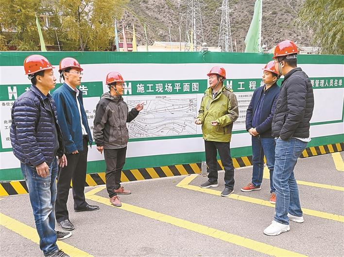 2017年12月蔡明(左四)在武漢高新大道現(xiàn)場查看工程進(jìn)度。