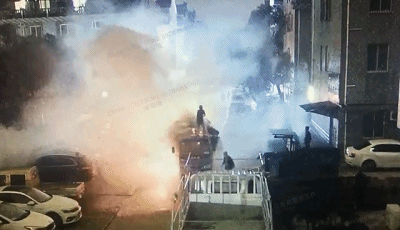 連滾帶爬沖向消防車······