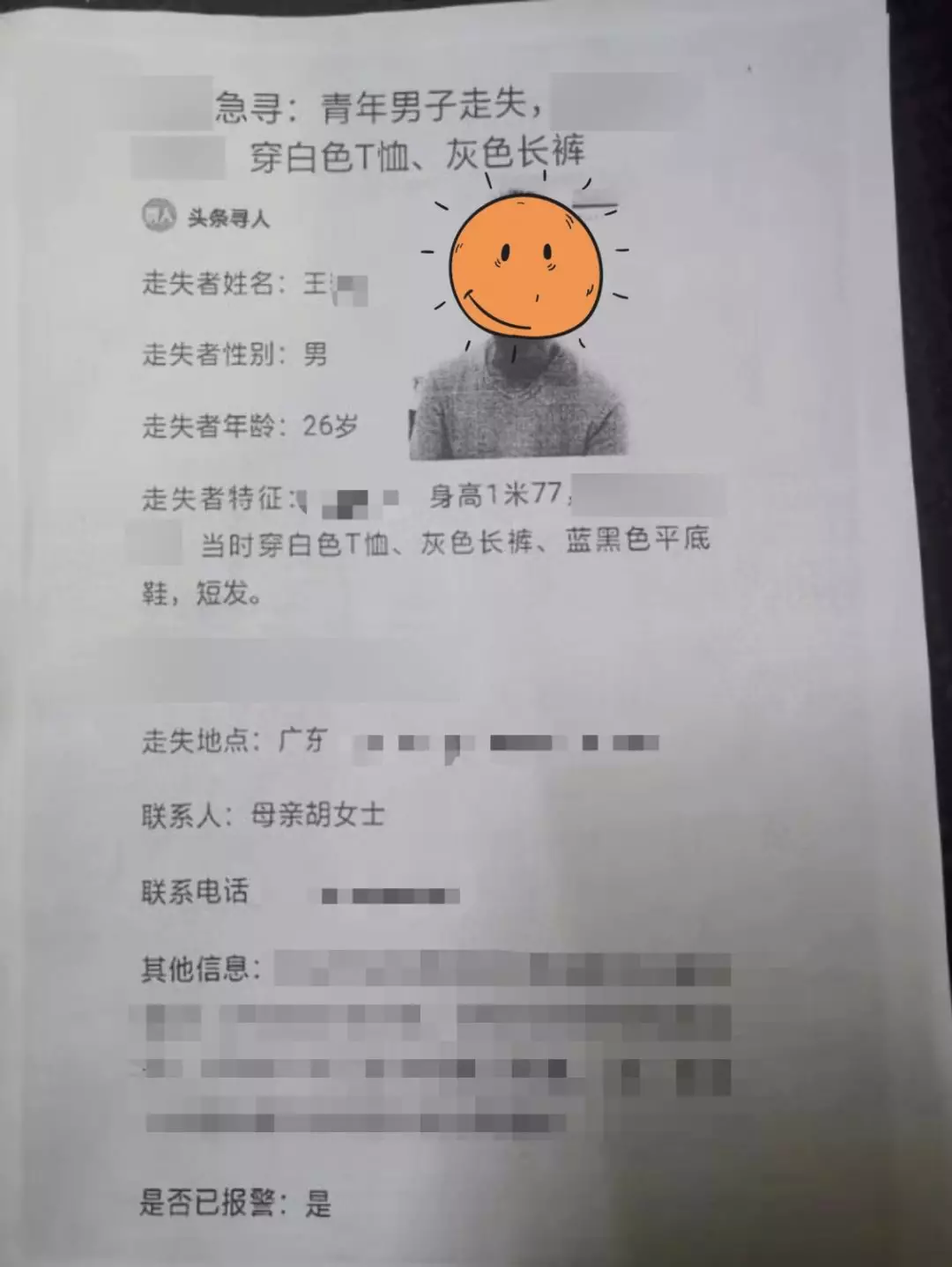 1月20日17時許,事主王先生和胡女士急沖沖進入深圳市公安局福田分局福田派出所報警,稱其兒子王某于19日坐車到深圳,下車后走失至今。