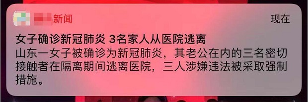 見圳客戶端?深圳新聞網(wǎng)2020年1月30日訊(見圳客戶端、深圳新聞網(wǎng)記者 張玲)這個(gè)春節(jié),有點(diǎn)不一樣。疫情當(dāng)前,需要全民齊努力。前不久一條新聞彈窗,相信很多人都看到了:山東一女子被確診為新型冠狀病毒感染的肺炎,她的老公等三名密切接觸者在隔離期間逃離醫(yī)院,三人涉嫌違法被采取強(qiáng)制措施。