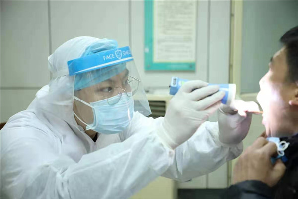 消化內(nèi)科苑仁杰醫(yī)生第一時間請纓到發(fā)診門診上班,這是他正在為發(fā)熱病人診治