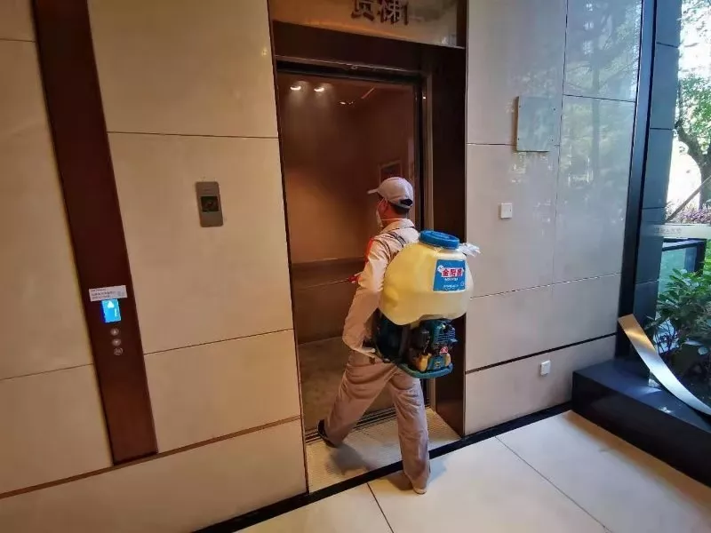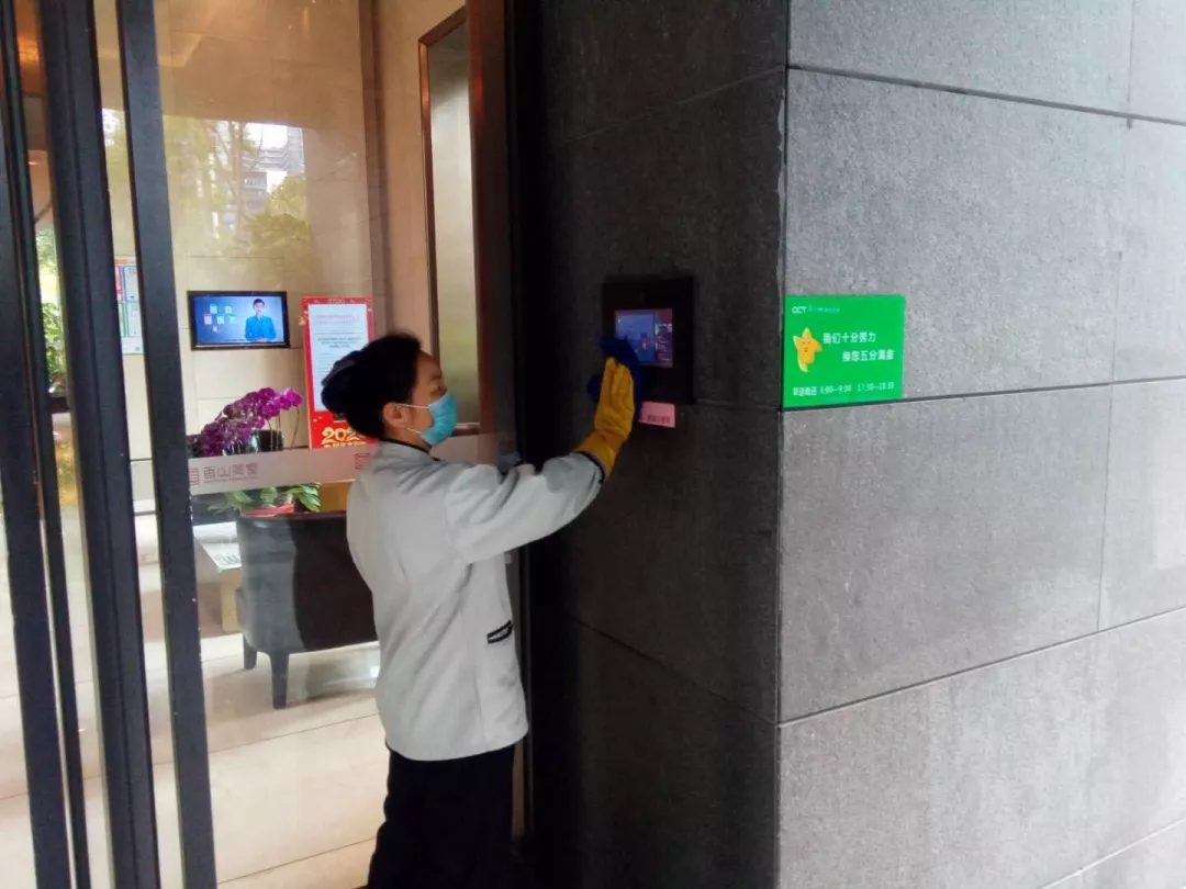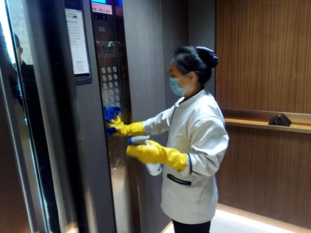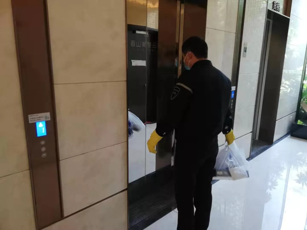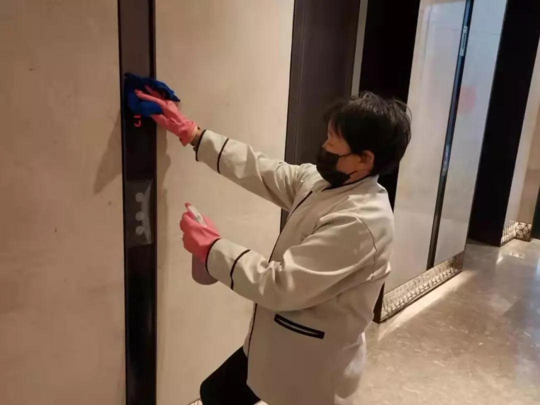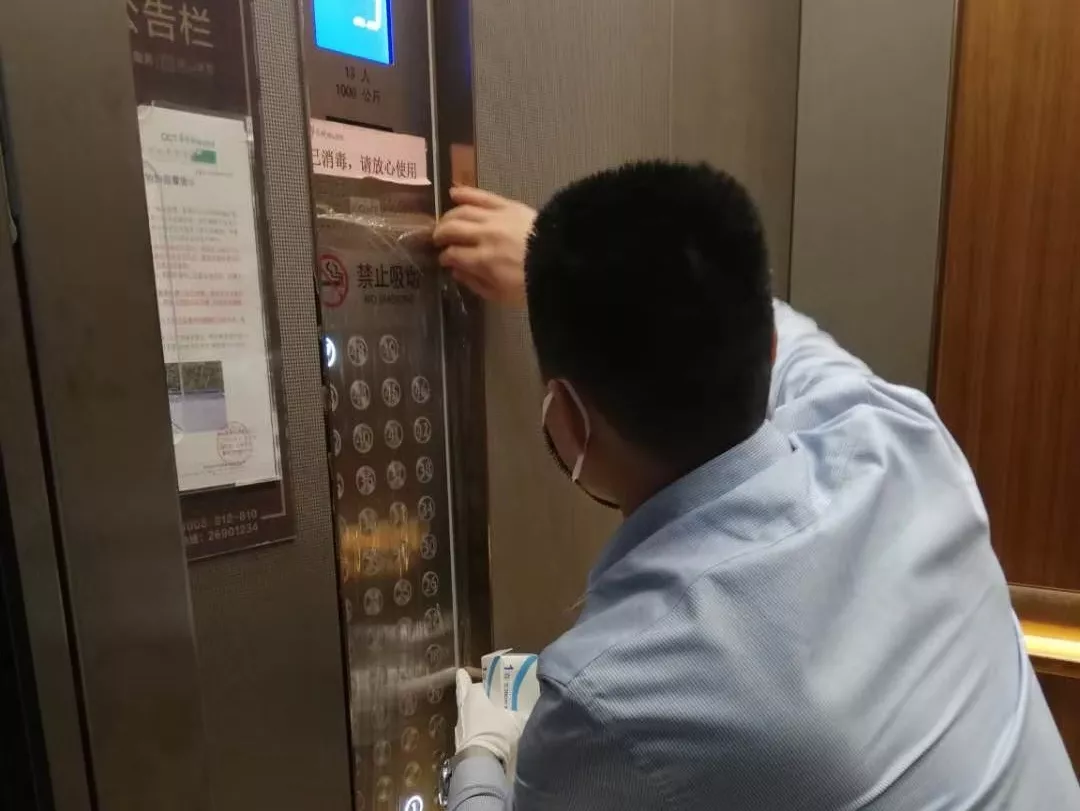 每天對小區(qū)公共區(qū)域大堂門把手、門禁對講機(jī)、電梯按鍵、大堂茶幾沙發(fā)等高頻接觸區(qū)進(jìn)行消毒及對轎廂按鈕定時(shí)更換保鮮貼膜。