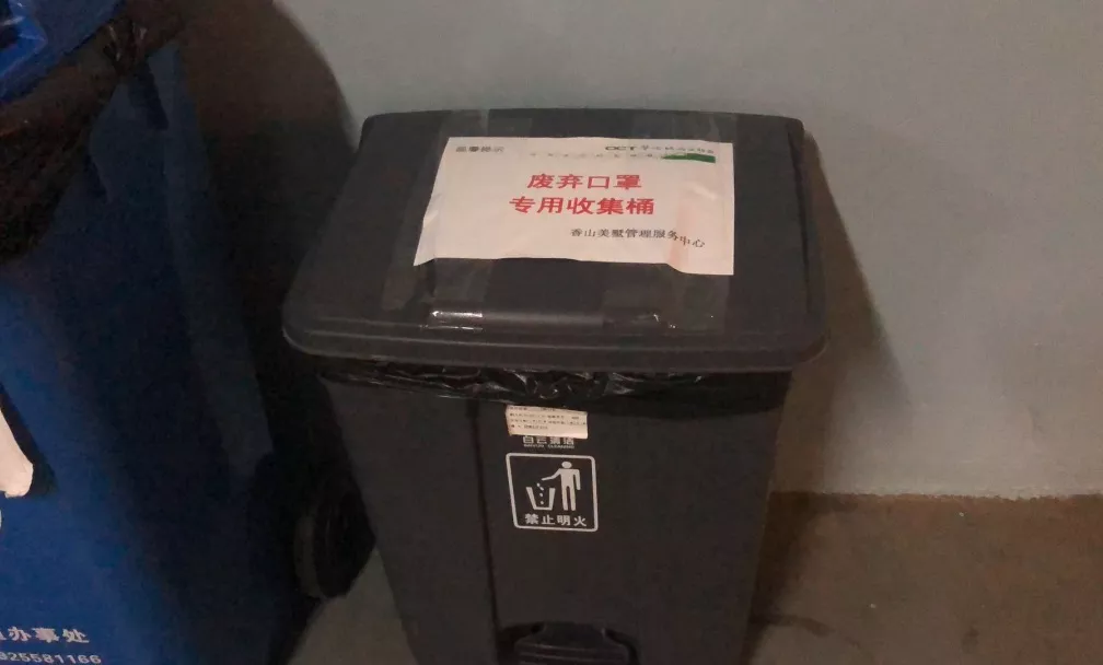 為防止廢棄口罩造成二次污染,管理服務(wù)中心在每棟樓宇垃圾集中收集點(diǎn)處,增設(shè)了“廢棄口罩專用收集桶”規(guī)范處理廢棄口罩;并要求工作人員每天對收集桶消毒加強(qiáng)防護(hù)。