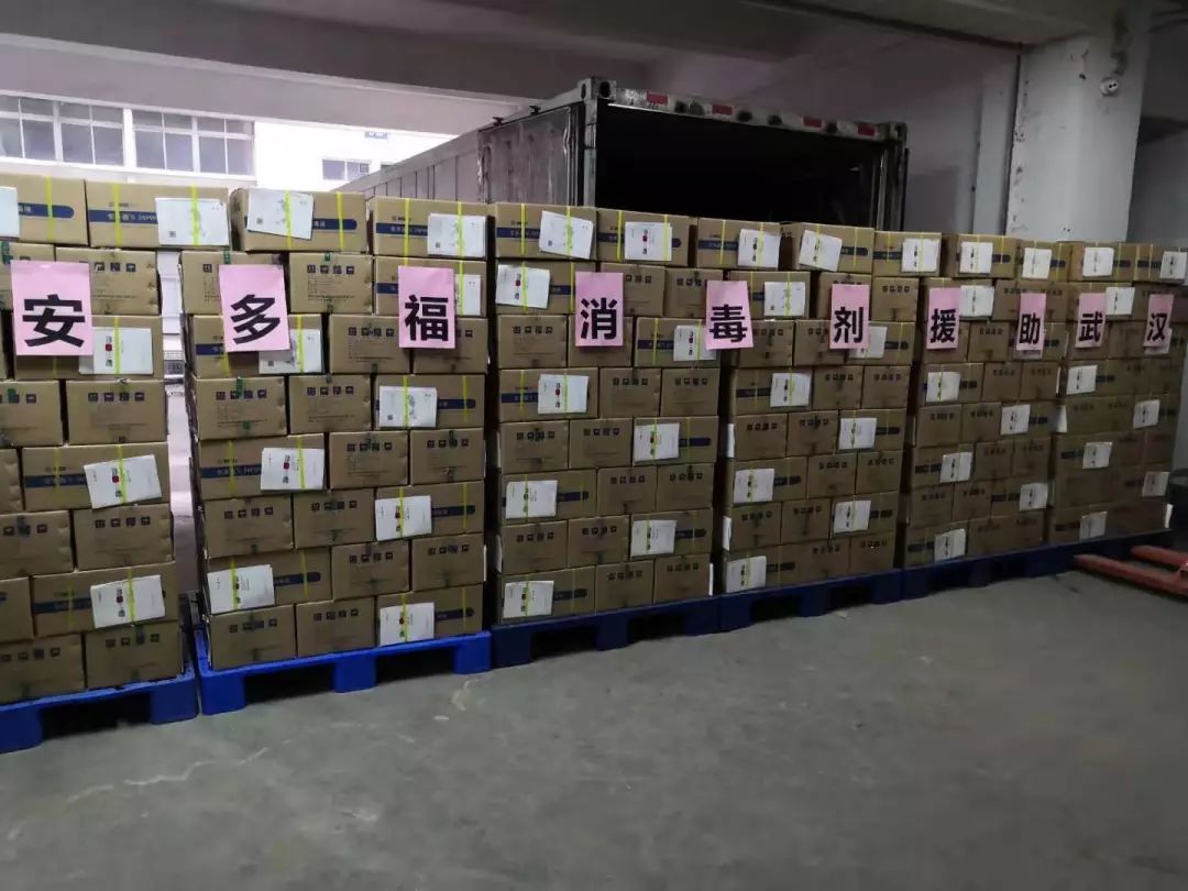 1月25日(大年初一)下午,安多福公司緊急向向武漢援助500箱共12000瓶專(zhuān)業(yè)醫(yī)用消毒液,總價(jià)值564000元,連夜從深圳馳援武漢,用于保障疫情防控一線的醫(yī)護(hù)人員安全。