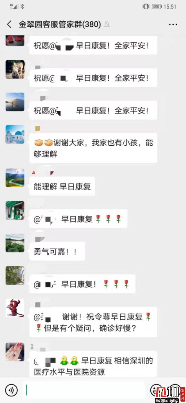 業(yè)主紛紛鼓勵(lì)確診患者家屬并祝其家人早日康復(fù)。