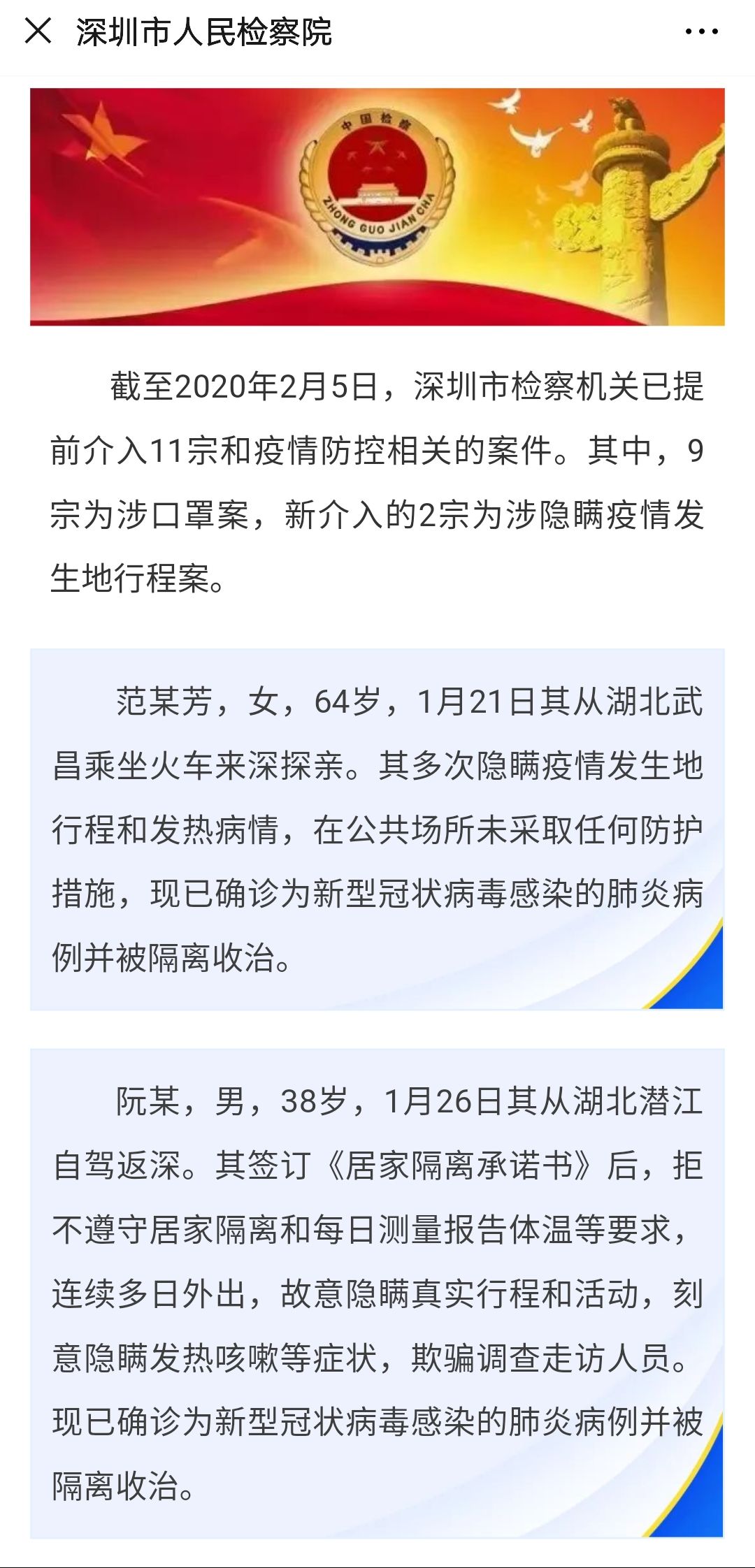 他們隱瞞疫情發(fā)生地行程和發(fā)熱病情四處走動(dòng) 深圳檢察機(jī)關(guān)出手了