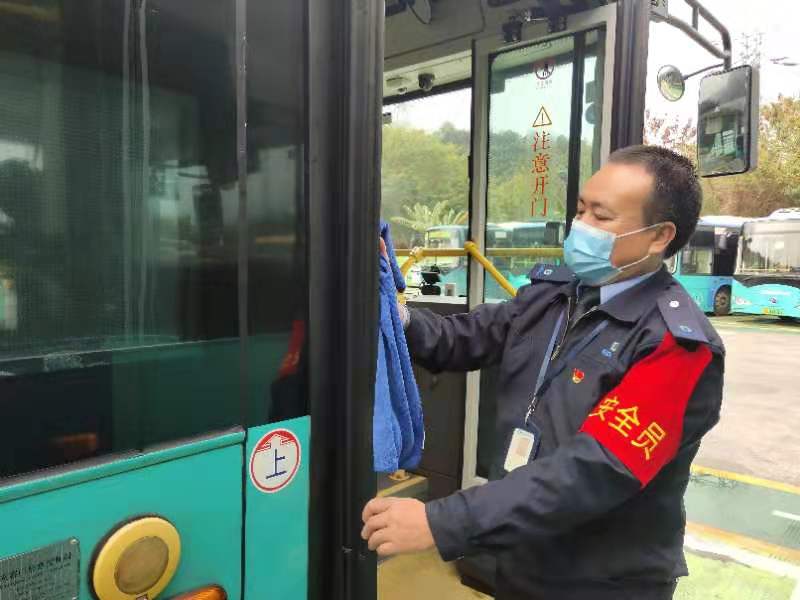 雖然每臺(tái)公交車出車前都要進(jìn)行清潔和消毒,但邱華還是有些不放心,他先把車上乘客容易觸碰到的扶手,用噴酒過(guò)消毒液的抹布再次抹了一遍,一切準(zhǔn)備妥當(dāng)后,才精神抖擻坐上自己的駕駛位。