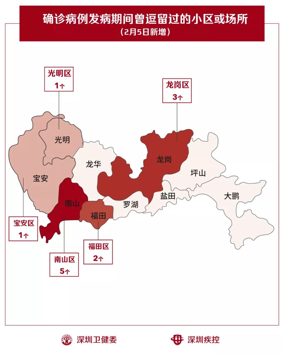 2月5日,疾控專業(yè)人員通過最新的流行病學(xué)調(diào)查確認,深圳新增12個小區(qū)(場所),有新確診的病人在出現(xiàn)病征期間曾經(jīng)逗留。