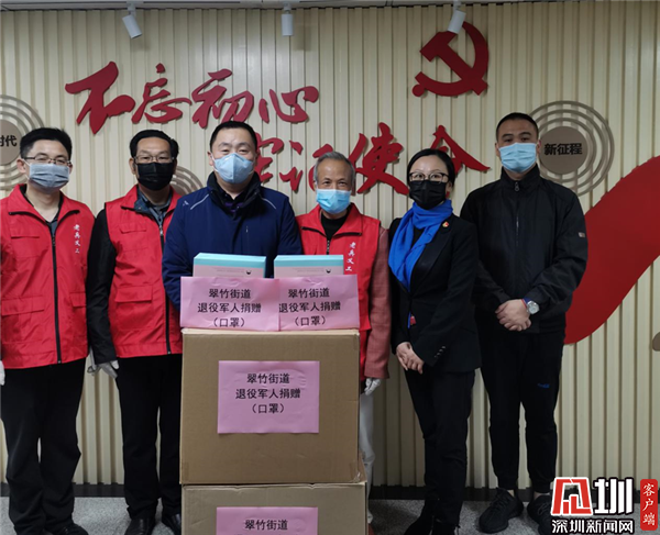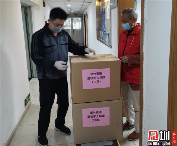 2月6日上午,一批價(jià)值2萬(wàn)多元的口罩送到深圳市羅湖區(qū)翠竹街道辦事處,原來(lái),這是退役軍人代表林貞輝、鄒強(qiáng)杰送來(lái)的防護(hù)物資?!霸诋?dāng)前防護(hù)物資緊缺的情況下,感謝你們對(duì)街道防疫一線工作的援助和支持,退役軍人‘退伍不褪色’的精神令人敬佩。”街道黨工委書記袁亮向他們表達(dá)感謝。