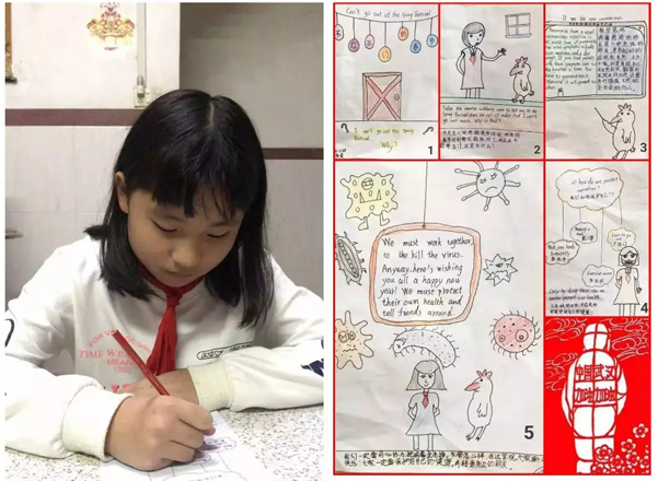 五(6)中隊的徐曼同學(xué)通過繪本讓更多的小朋友了解新型冠狀病毒感染的肺炎。