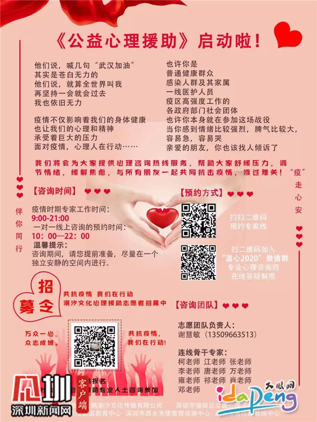 葵涌辦事處壩光社區(qū)婦聯(lián)副主席、大鵬潮汐文化傳播有限公司負責人謝慧敏積極響應(yīng)新區(qū)群團工作部建立新區(qū)防疫心理疏導(dǎo)志愿服務(wù)隊的號召,聯(lián)合多家機構(gòu)啟動公益心理援助,為市民提供線上調(diào)節(jié)情緒、舒緩壓力等免費心理服務(wù),共渡心理關(guān),服務(wù)將持續(xù)到疫情結(jié)束。