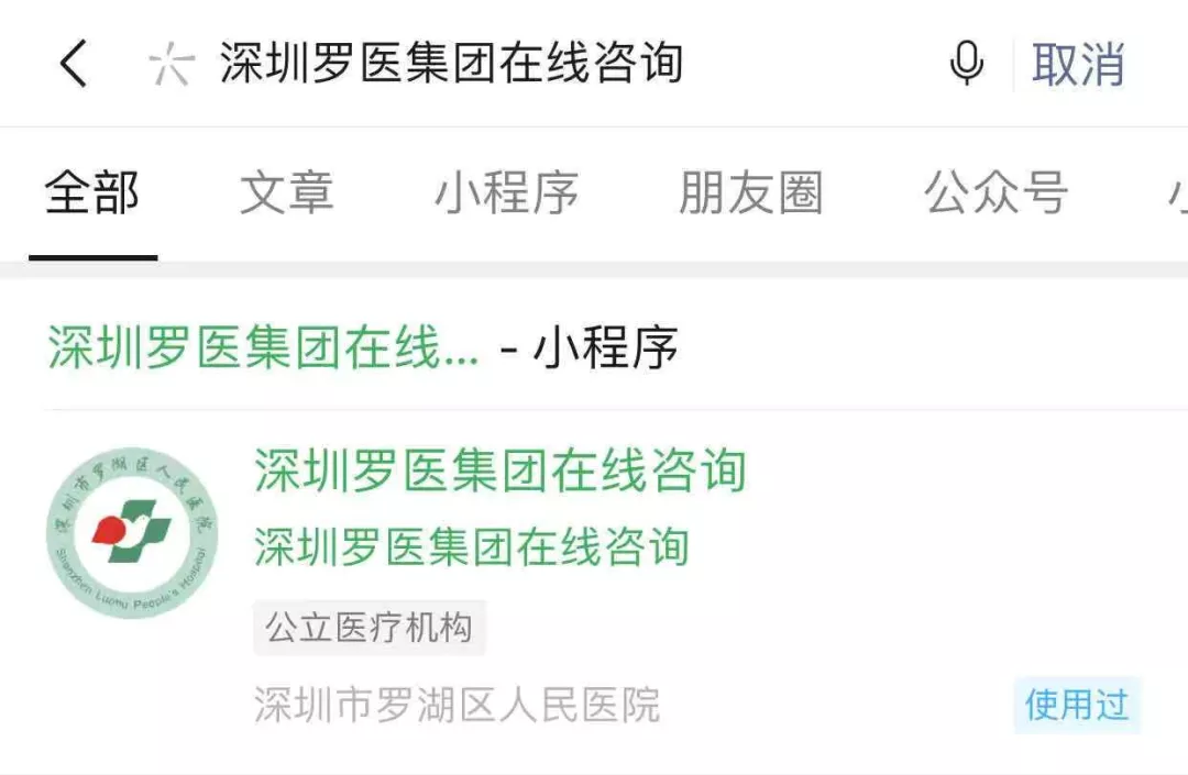 ③或者在微信右上角“搜一搜”搜索“深圳羅醫(yī)集團在線咨詢”進入小程序