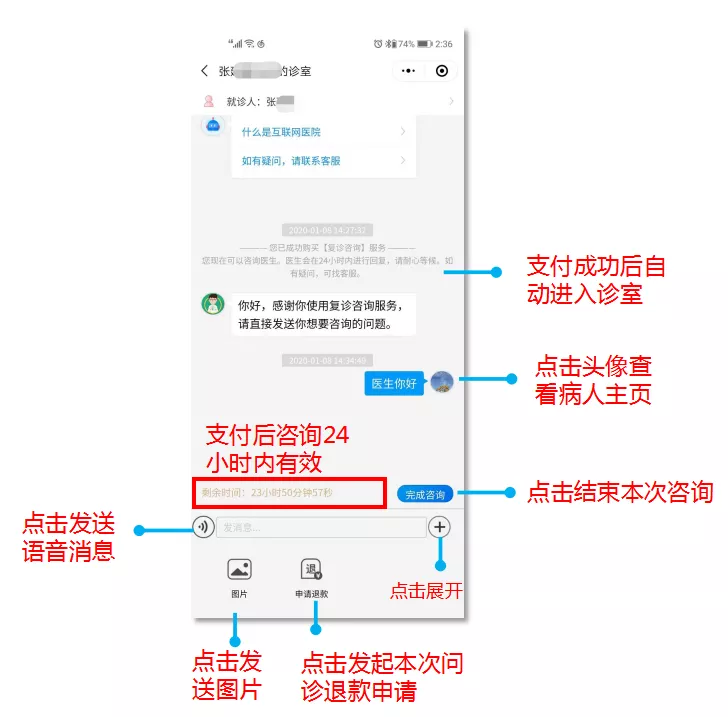 方式二:亦可通過直接掃描醫(yī)生二維碼,添加就診人后可以在診室向醫(yī)生發(fā)起問診咨詢