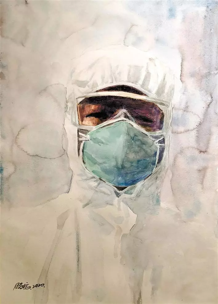 魯文詠在詩(shī)歌《最美的人,你看不見(jiàn)臉》中寫道:“最美的人,你看不見(jiàn)他們的臉。他們的臉被口罩遮著,被護(hù)目鏡遮著,被防護(hù)服遮著,有時(shí),也被夜色遮著。他們?cè)谌巳豪锎┬?,在焦灼的企望的目光里穿行。他們?lái)了,他們穿過(guò),焦躁的人群就安靜下來(lái)。最美的人,你看不見(jiàn)他們的臉,看不見(jiàn)年齡,甚至性別。是的,天使不計(jì)年齡,天使不分性別。”