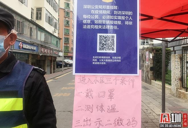 對(duì)于還未登記的市民或者剛返深的市民,該執(zhí)勤人員表示,他們可現(xiàn)場(chǎng)掃描二維碼,填報(bào)真實(shí)信息即可立即生成驗(yàn)證二維碼。“凡是進(jìn)出人員,必須同時(shí)滿足三個(gè)條件:戴口罩、測(cè)體溫、出示二維碼,我們才放進(jìn)來。”該執(zhí)勤人員一邊檢查進(jìn)出人員信息,一邊向現(xiàn)場(chǎng)居民宣傳。(見圳客戶端、深圳新聞網(wǎng)記者 潘峰)