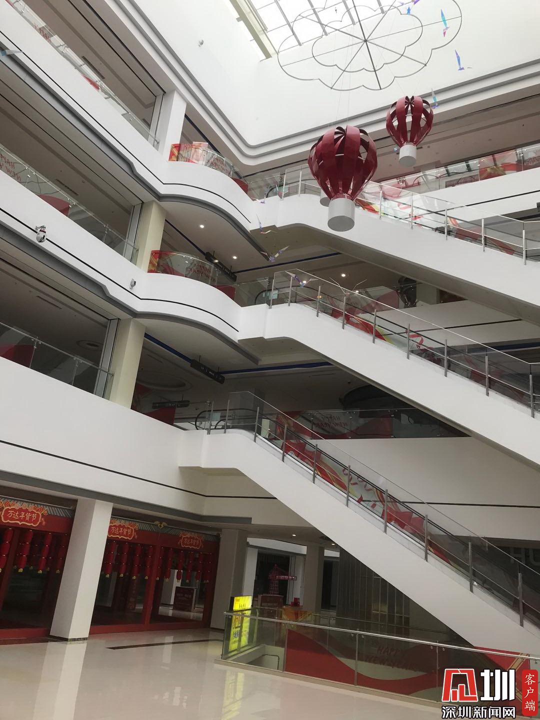萬(wàn)達(dá)廣場(chǎng)四層的商場(chǎng)里只有超市在營(yíng)業(yè)。