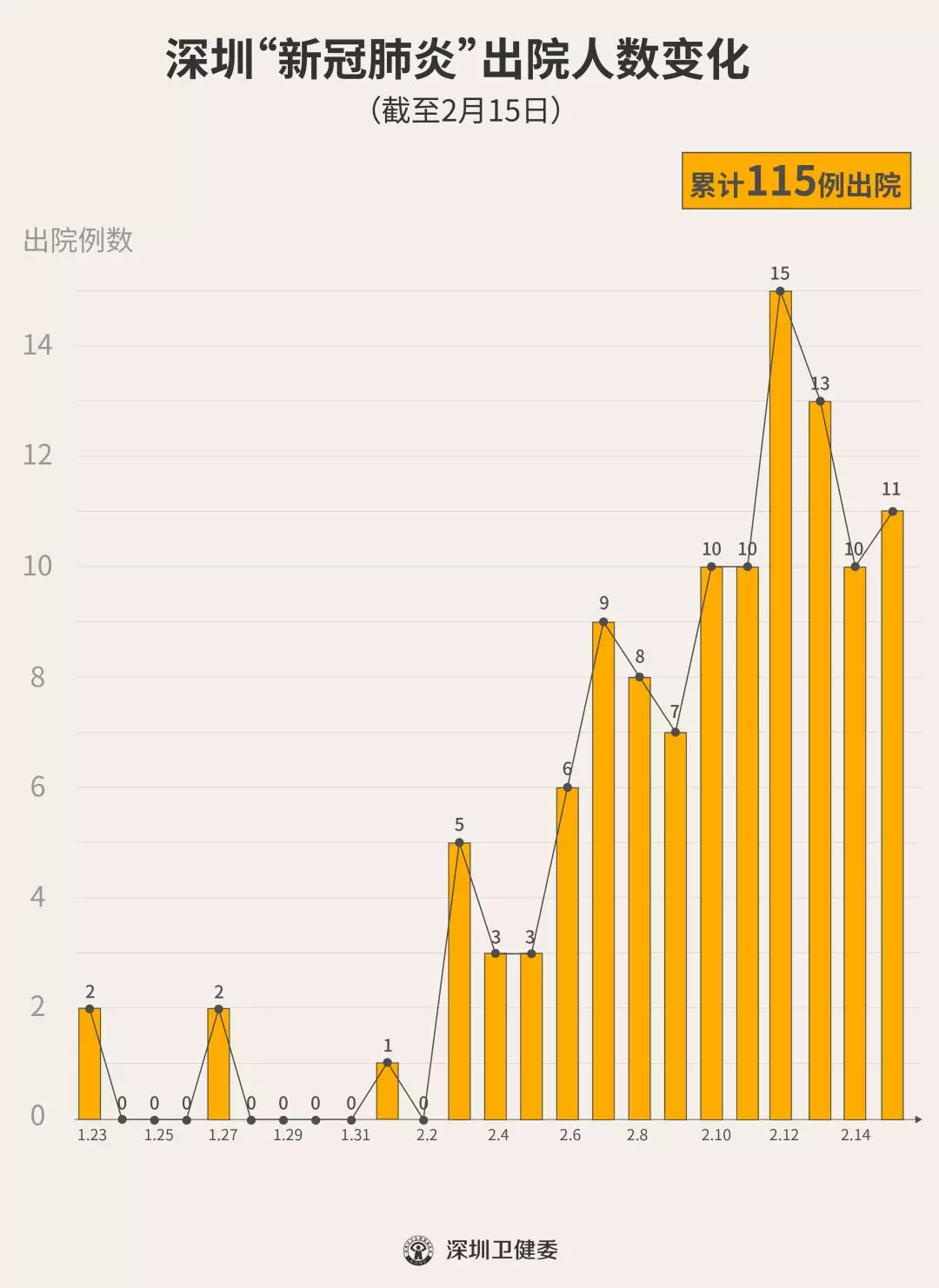 2月15日下午,經(jīng)專家組會診,深圳再有11名新型冠狀病毒肺炎確診患者出院,累計達(dá)115人。