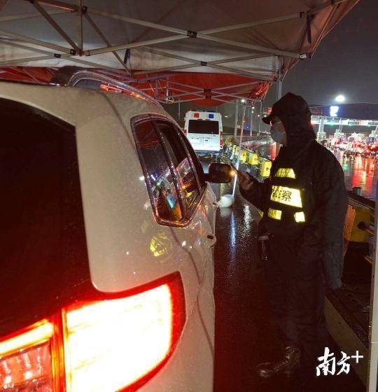 寶安區(qū)羅田檢疫站指揮部總指揮,石巖街道黨工委副書記、人大工委主任鄧亞虎,石巖街道副主任林志明和羅田交通聯(lián)合檢疫站臨時黨支部黨員冒雨檢查。當晚,深圳市公安局經(jīng)偵支隊支援4名民警在現(xiàn)場冒雨防疫檢查。