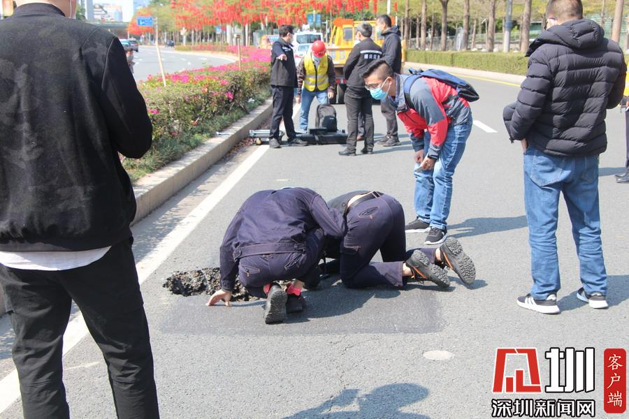 見圳客戶端·深圳新聞網(wǎng)2020年2月18日訊(見圳客戶端 深圳新聞網(wǎng)記者 吳梓欣)2月18日上午10點(diǎn),有網(wǎng)友報(bào)料稱,福田區(qū)深南大道輔道市民廣場(chǎng)一路段發(fā)生地面塌陷。上午10點(diǎn)40分,記者在現(xiàn)場(chǎng)看到,該路面有一個(gè)直徑約一米、深約一米的坑口,旁邊還有一道長(zhǎng)約20米的裂痕。下午3點(diǎn),深圳市交通運(yùn)輸局回復(fù)深圳新聞網(wǎng)記者稱,該處位于地鐵2號(hào)線上方,周邊地下管道完好,該輔道路段約有40~50米路基土疏松,塌陷原因是該路段地下工程施工對(duì)地基擾動(dòng)且回填土未夯實(shí)。該局已安排養(yǎng)護(hù)單位立即進(jìn)場(chǎng)開挖回填搶修,并于下午4點(diǎn)10分完成砼回填搶修,預(yù)計(jì)本周五恢復(fù)交通。