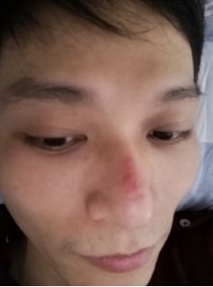 ▲9個小時的工作下來,林培挺的鼻梁早已被口罩勒紅。