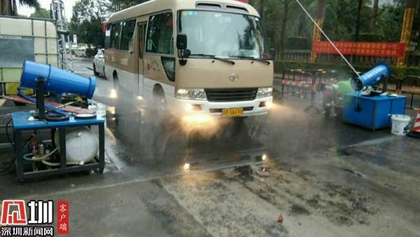 園區(qū)在車輛入口處嚴格對每一輛車進行消毒處理。
