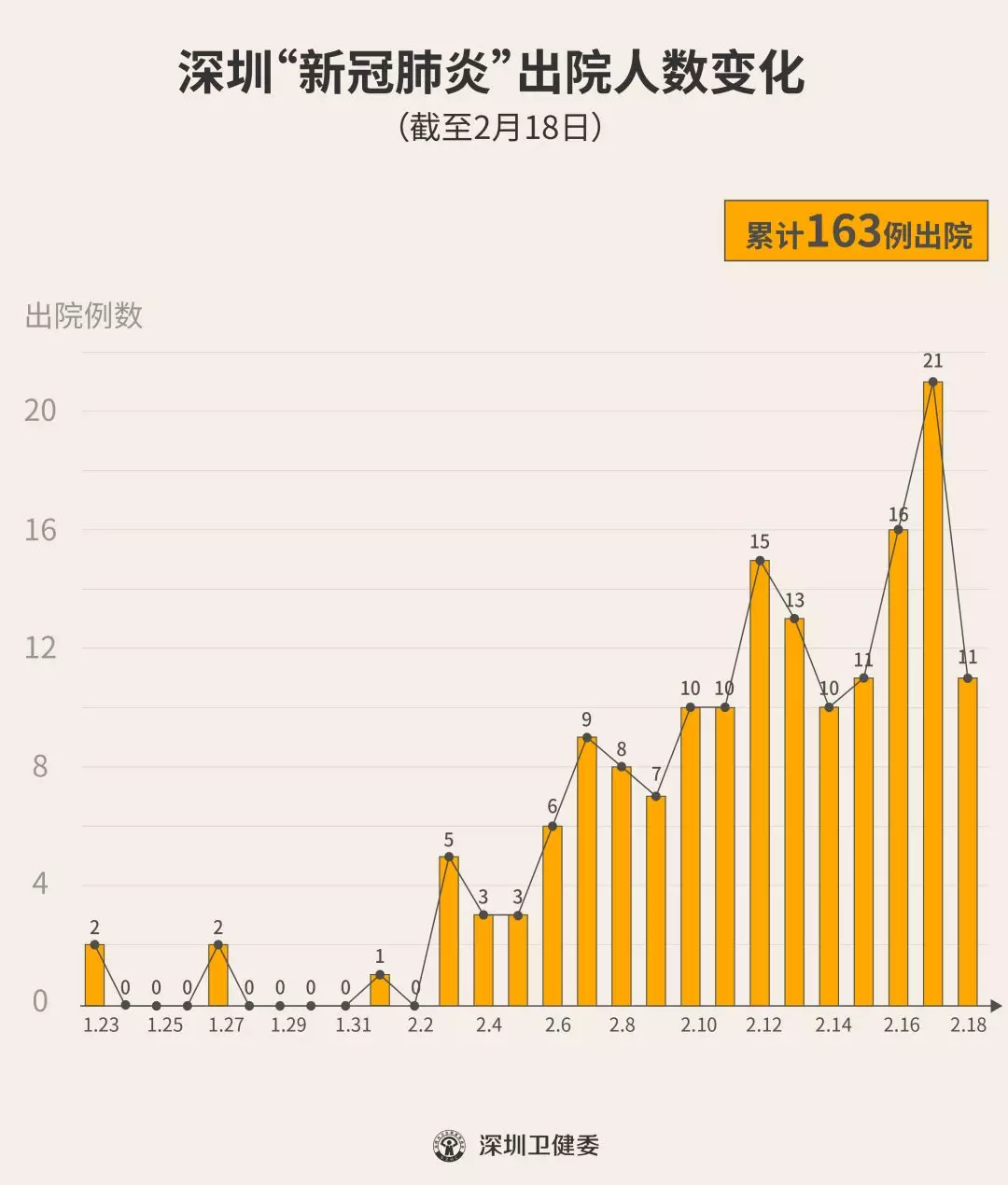 2月18日下午,經(jīng)專(zhuān)家組會(huì)診,深圳再有11名新型冠狀病毒肺炎確診患者出院,累計(jì)達(dá)163人,連續(xù)16天有人出院。