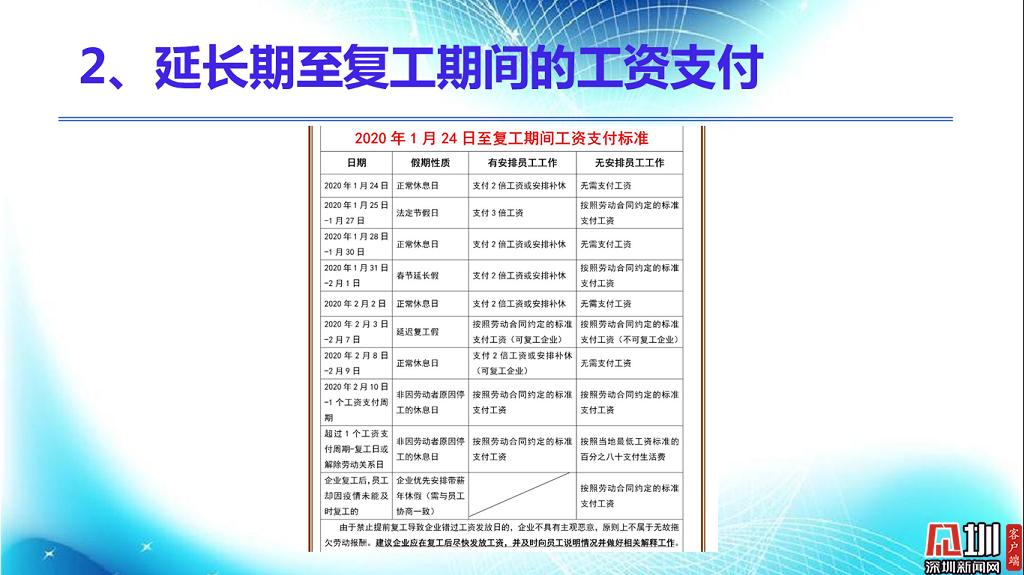 見(jiàn)圳客戶端?深圳新聞網(wǎng)2020年2月18日訊(見(jiàn)圳客戶端、深圳新聞網(wǎng)記者 焦慧茹)疫情影響了社會(huì)的方方面面,給企業(yè)和職工帶來(lái)了新的問(wèn)題。對(duì)于廣大職工而言,擔(dān)心的是疫情期間工資發(fā)放、復(fù)工安排等。對(duì)于企業(yè)而言,擔(dān)心的是如何順利復(fù)工復(fù)產(chǎn)。為此,深圳市總工會(huì)聯(lián)合深圳新聞網(wǎng)推出“復(fù)工防疫微課堂”第六期,邀請(qǐng)講師楊文浩,分析、整理了疫情之下企業(yè)復(fù)工用工防范要點(diǎn),幫助大家解決困惑。