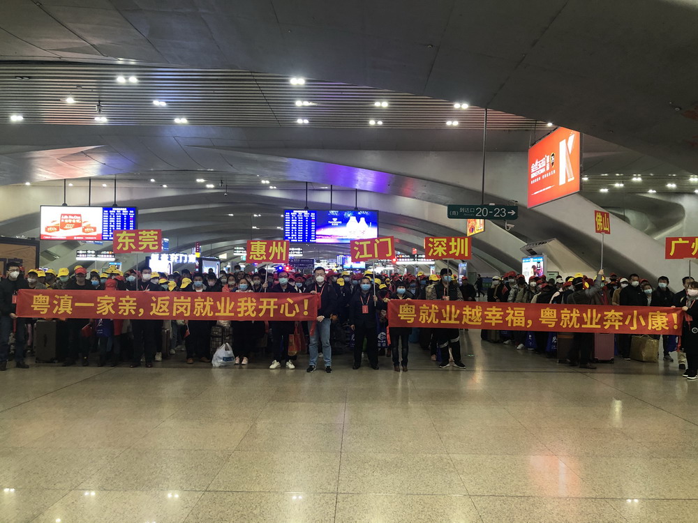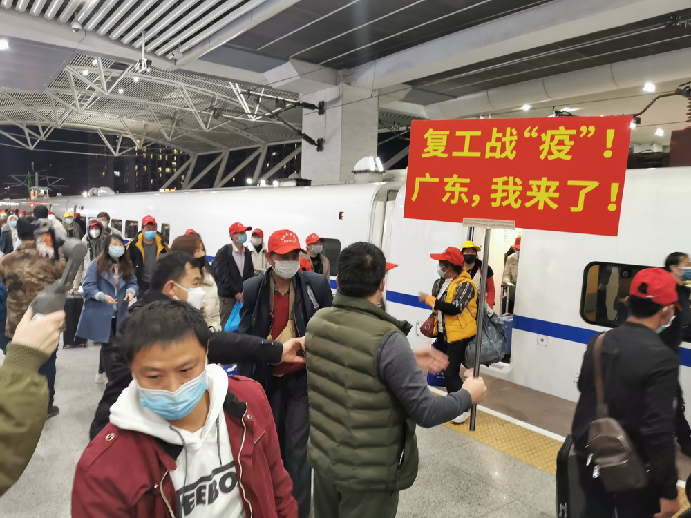 見圳客戶端·深圳新聞網(wǎng)2020年2月19日訊 2月18日14時(shí)36分,載有496名云南籍務(wù)工人員的D4856次列車從昆明南站開出,于當(dāng)日22時(shí)36分抵達(dá)廣州南站,全面拉開了省際協(xié)作組織異地務(wù)工人員節(jié)后有序返粵返崗的序幕。據(jù)悉,這是廣東省人社廳和云南省人社廳共同策劃,“點(diǎn)對(duì)點(diǎn)”訂制打造的首趟返粵專列,車上的乘客都是節(jié)前已在廣東就業(yè)的返鄉(xiāng)員工,分別來自云南昆明、曲靖、紅河、昭通等7個(gè)市州。雖然現(xiàn)在新冠肺炎疫情還未完全過去,但這496名務(wù)工人員將帶著政府免費(fèi)提供的返崗專列“大禮包”,乘著憧憬與希望,分別前往廣州、深圳、佛山、東莞、惠州等市開始新一年的工作和生活。來自云南文山州的李先生在采訪中激動(dòng)表示,自己已在廣東工作兩年多,廣東的就業(yè)環(huán)境好,這次能在政府幫助下免費(fèi)回來上班,一路上還有人社部門工作人員帶隊(duì)指引,感到非常幸運(yùn),一定會(huì)好好珍惜,努力工作。