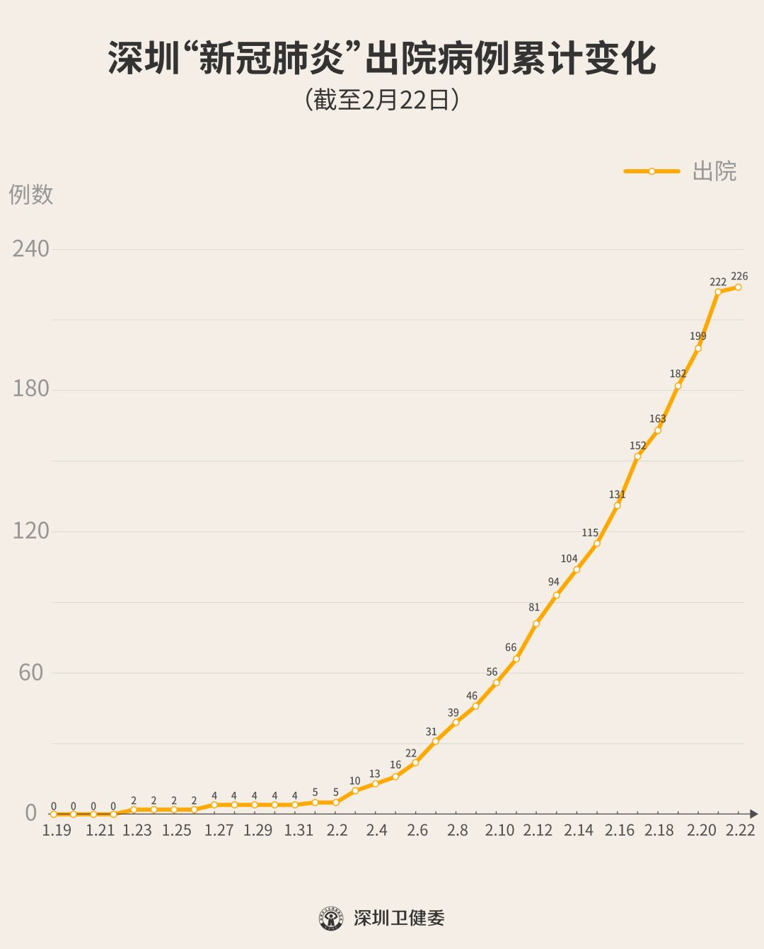 2月22日下午,經(jīng)專(zhuān)家組會(huì)診,深圳再有4名新型冠狀病毒肺炎確診患者出院,累計(jì)達(dá)226人,連續(xù)20天有人出院。