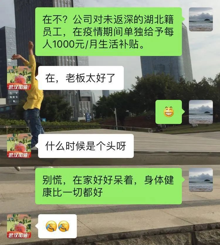 “工資已經(jīng)全額到賬,由于疫情影響,針對不能返程的湖北籍員工,每人額外發(fā)放1000元生活補貼。”2月17日,身在湖北公安的晏君收到公司通知后,懸著的心終于放了下來。晏君是深圳坤弘印務(wù)有限公司倉儲部記賬員,她坦言,公司發(fā)放的工資和生活補助是“雪中送炭”,過去近一個月心里確實很忐忑,既擔(dān)心沒工資發(fā),又害怕丟了工作,如今不用擔(dān)心經(jīng)濟來源了?!瓣P(guān)鍵時候,公司不僅沒有拋棄我們,還給我們諸多關(guān)愛。我發(fā)現(xiàn)我更愛公司、更愛我的工作了?!?/p>