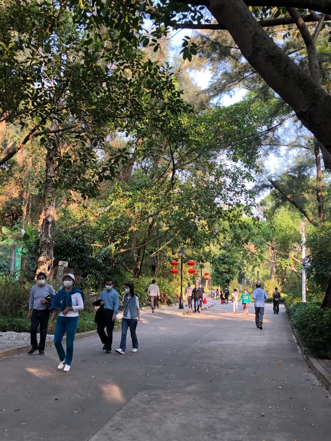 在光明區(qū)塘家公園,每隔一小段距離,就有零星幾個(gè)當(dāng)?shù)氐娜罕?,在公園的池塘邊觀賞風(fēng)景,散散心,均有佩戴口罩。