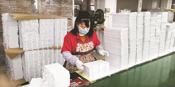據(jù)公司負(fù)責(zé)人向高峰介紹,公司主要生產(chǎn)紙類印刷品、包裝盒、包裝袋等,產(chǎn)品出口遍布亞洲、歐洲、美洲及澳洲等地,有部分客戶春節(jié)前已經(jīng)下了一批訂單?!拔覀?cè)谌ψ龊靡咔榉揽氐耐瑫r(shí),也要確保按時(shí)按質(zhì)按量生產(chǎn)好節(jié)后第一批產(chǎn)品。”