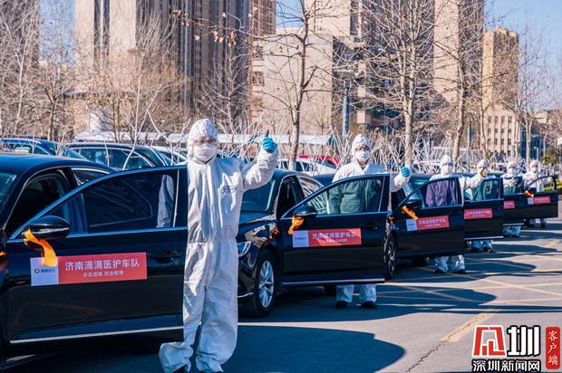 山東濟(jì)南滴滴醫(yī)護(hù)車(chē)隊(duì)司機(jī)為醫(yī)護(hù)人員提供免費(fèi)接送服務(wù)。