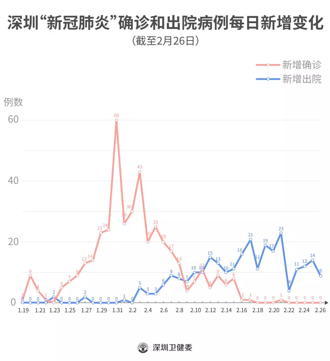 截至2月26日24時,深圳累計報告“新冠肺炎”確診病例417例。2月26日當天全市無新增確診病例,當天出院病例9例(從26日起不再公布出院個案)。