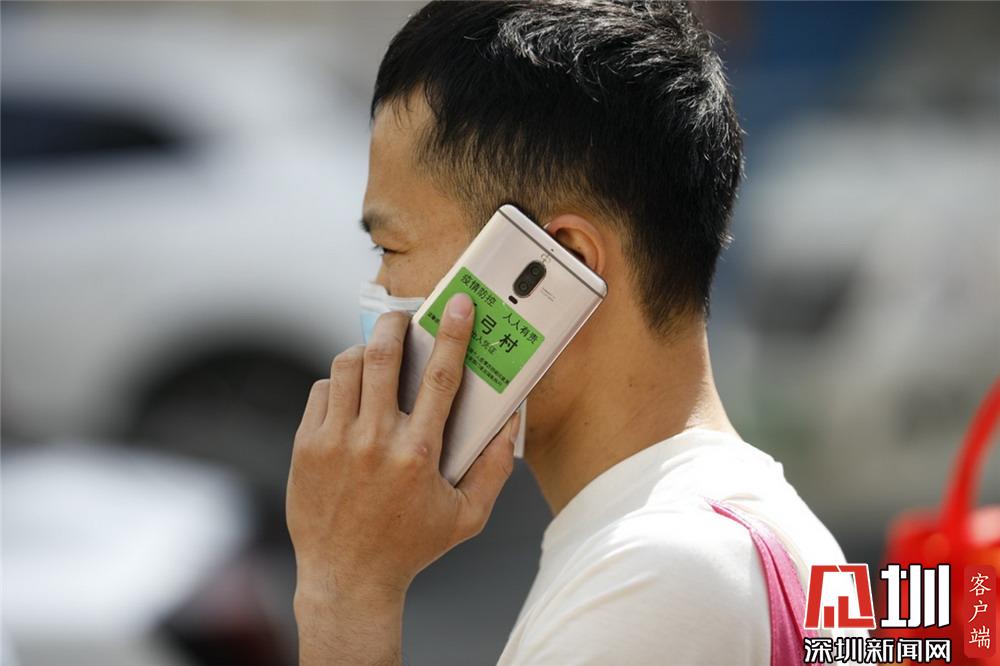 華強北,市民將出入憑證貼在手機殼上。