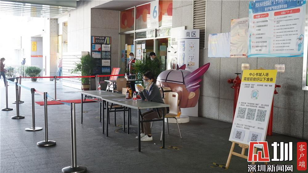 深圳中心書城已開放,進(jìn)門要進(jìn)行嚴(yán)格的登記和檢查。
