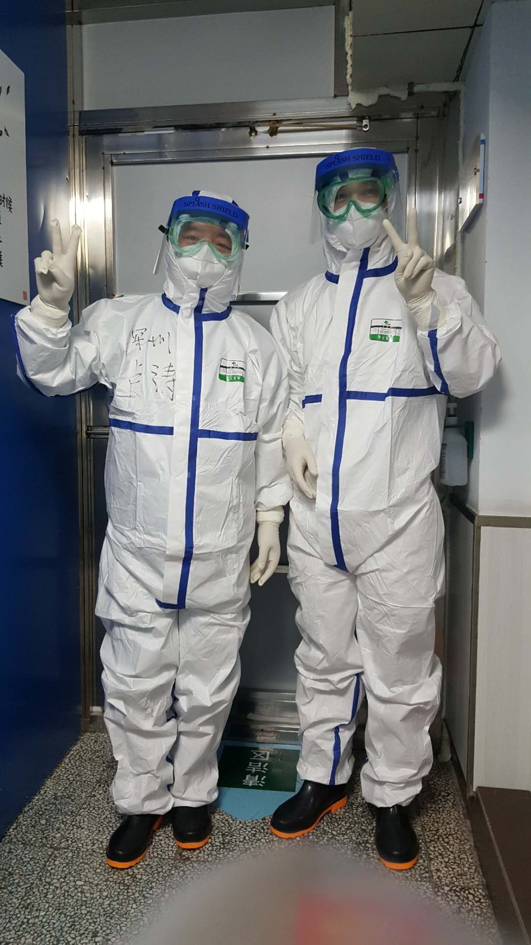 一切穿戴妥當,請護士長拍個照,留下了最珍貴最勇敢的照片。深吸一口氣,推門……我和我的隊員們一樣,沖上了最前沿!