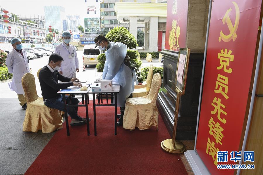 2月27日,深圳龍崗一家“健康驛站”的工作人員為重點(diǎn)疫區(qū)返回深圳的男子登記。