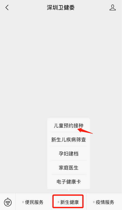 點(diǎn)擊公眾號(hào)菜單欄“新生健康”-“兒童預(yù)約接種”▽