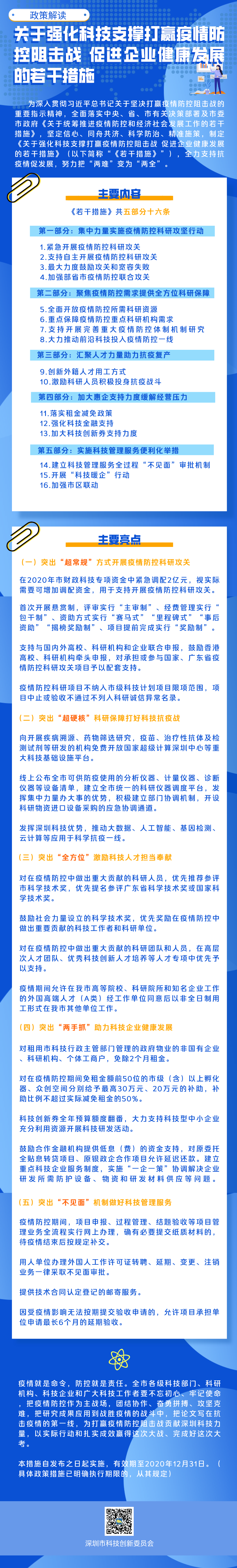 見圳客戶端·深圳新聞網(wǎng)2020年3月3日訊(見圳客戶端、深圳新聞網(wǎng)記者 陳婕)為深入貫徹習(xí)近平總書記關(guān)于堅(jiān)決打贏疫情防控阻擊戰(zhàn)的重要指示精神,深圳市科技創(chuàng)新委員會(huì)制定《關(guān)于強(qiáng)化科技支撐打贏疫情防控阻擊戰(zhàn)促進(jìn)企業(yè)健康發(fā)展的若干措施》(以下簡稱“《若干措施》”),《若干措施》共五部分十六條,其中,突出“超常規(guī)”方式,在2020年財(cái)政科技專項(xiàng)資金中緊急調(diào)配2億元,視實(shí)際需要可增加調(diào)配資金,用于支持開展疫情防控科研攻關(guān),努力把“兩難”變?yōu)椤皟扇薄?/p>