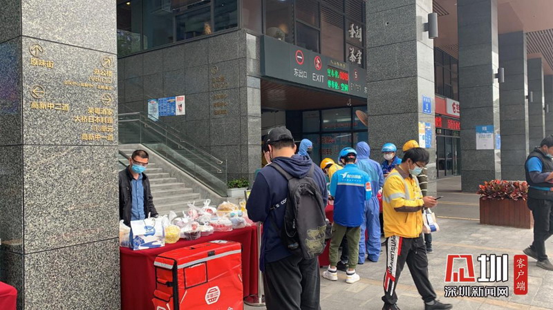 目前,人員用餐還是以外賣(mài)為主,科興科學(xué)園的美食街除了服務(wù)本園區(qū)外,也為周邊人員提供用餐服務(wù)。園區(qū)鼓勵(lì)大家盡量線上點(diǎn)餐,由相關(guān)人員下樓統(tǒng)一取餐,再分散自行用餐,避免人員聚集。